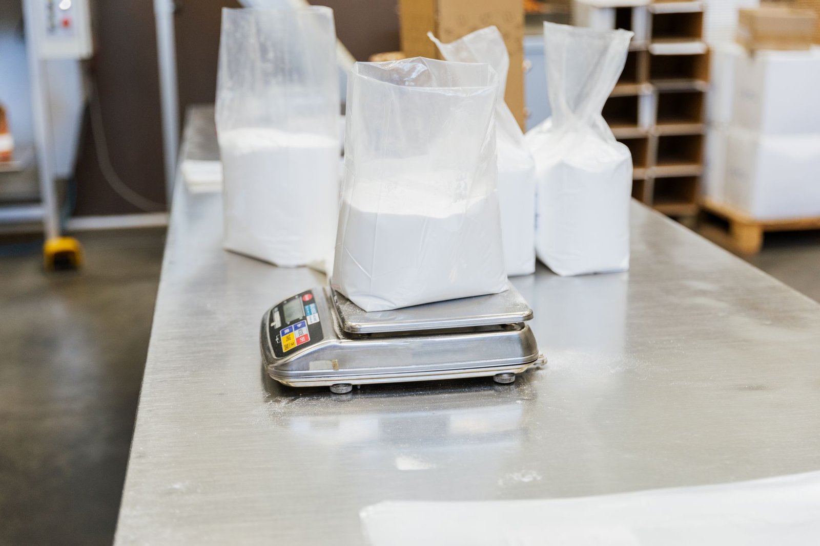 Manufacturing operations that weigh batches of raw material in quantities of hundreds of pounds — steel components, chemical feedstocks, grain, aggregate — require the capacity and platform size of a floor scale. The load is typically scooped, poured, or rolled onto the platform rather than hand-placed.